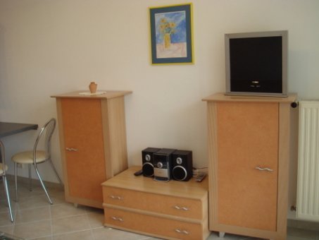 Das Appartement ist hell und modern ausgestattet. Die ausziehbare Federkern-Schlafcouch ist aus hochwertigem Material. Die Wohnung verfügt über einen Balkon, eine Küchenzeile, Vorraum, Abstellraum, Kabel-Fernsehen, Radio und ein modernes Duschbad.