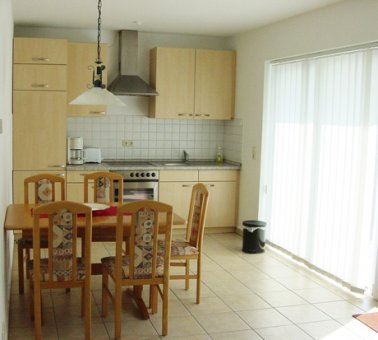 Die Wohnungen haben einen großen Wohnraum mit Küchenzeile, 1 Schlafzimmer mit Doppelbett und ein weiteres Schlafzimmer mit zwei Einzelbetten.. Die Einrichtung ist gediegen, hell und freundlich. Herd mit Backofen, Dunstabzug, Kühlschrank, Geschirrspüler, Kaffeemaschine usw. sind ebenso vorhanden, wie TV, Stereoanlage und Radio. DU/WC in allen Wohnungen ist selbstverständlich. In der kalten Jahreszeit sorgt die Fußbodenheizung für Behaglichkeit.