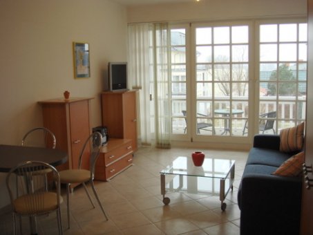 Das Appartement ist hell und modern ausgestattet. Die ausziehbare Federkern-Schlafcouch ist aus hochwertigem Material. Die Wohnung verfügt über einen Balkon, eine Küchenzeile, Vorraum, Abstellraum, Kabel-Fernsehen, Radio und ein modernes Duschbad.
